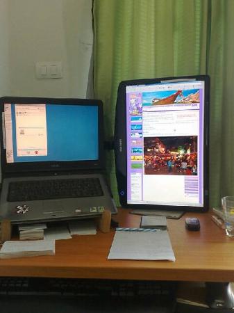 My work station. September 25, 2008 Lifeblog Get a big screen and rotate it sideways, you won't regret it. Less scrolling on long webpages, documents and emails.