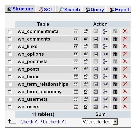 On my verio VPS hosting account I had problems getting logged into PHPmyadmin... unlike other web hosts there was no mention of PHPmyadmin in the control panel. After a quick conversation with technical support they told me I needed to install it before I could use it. We did that by logging into shell  ( I use WinSCP for shell ssh ) and typing "install PHPmyadmin" and then visiting [https://my username.securesites.net/phpmyadmin/](https://my username.securesites.net/phpmyadmin/) . The next step was to create a new database and import my sql database file that I exported from the temp wordpress site I setup to test and develop the site. The image below shows my db tables after the import. I the just changed the wp-config file to connect to the new db.