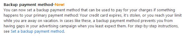 BingAds has a "Backup Payment Method" that is supposed to be exactly what it sounds like... a credit card or payment method that will be used/charged in the event that your primary payment method doesn't work for whatever reason. So when my primary funding source was not working I figured I was covered.... why wouldn't I be? I prepared my account with a trusty backup payment method!