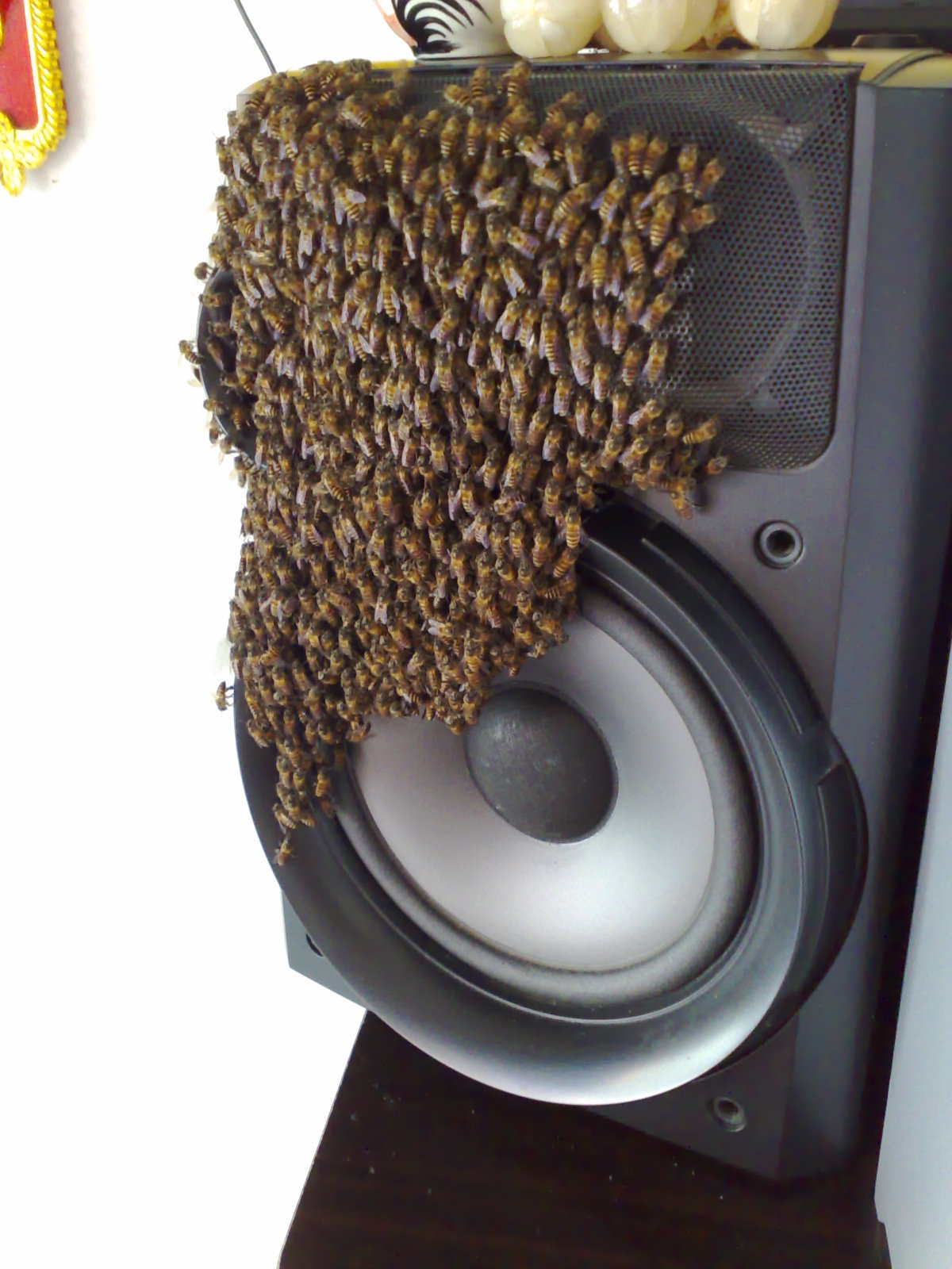 This is my neighbor's home entertainment system. This photo is from about 5 months ago and the bees are still there. They won $2000 shortly after. I'll keep you posted on the other neighbor's good fortune.