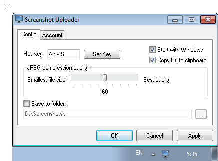 Images are uploaded to a third-party website... no guarantee how long it will stay online for. Images are uploaded in JPEG format only ( you do get to choose a quality level ). Doesn't seem to support multi-monitors ( it only captures on one of my monitors ).